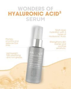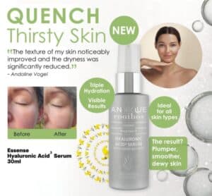 Annique’s Essense Hyaluronic Acid³ Serum uses all three types for multi-layer hydration: